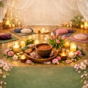 in meinen Raum der Ruhe und Achtsamkeit, der Massagen und Meditation, wohltuendem Yoga und Entschleunigung