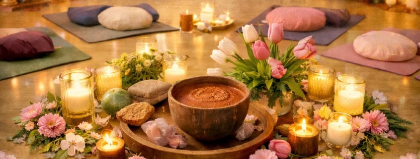 In meiner 120 minütigen Kakaozeremonie mit Yoga Nidra biete ich einen geschützen Raum zur Herzöffnung und Tiefenentspannung.
